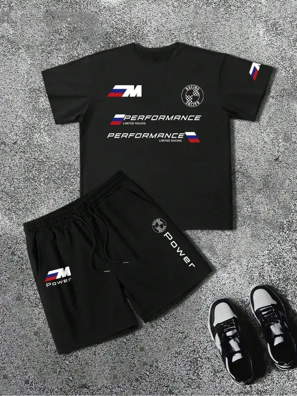 Manfinity EMRG Erkek Günlük Araba Harf Baskılı Kısa Kollu Tişört Ve Şort Takımı