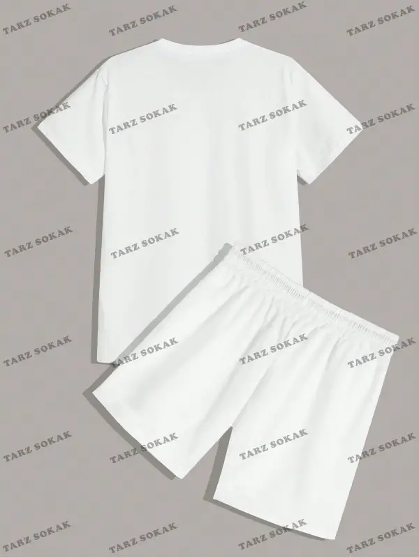 Erkek Yazılı Baskılı Kısa Kollu Tişört Ve Şort Takım