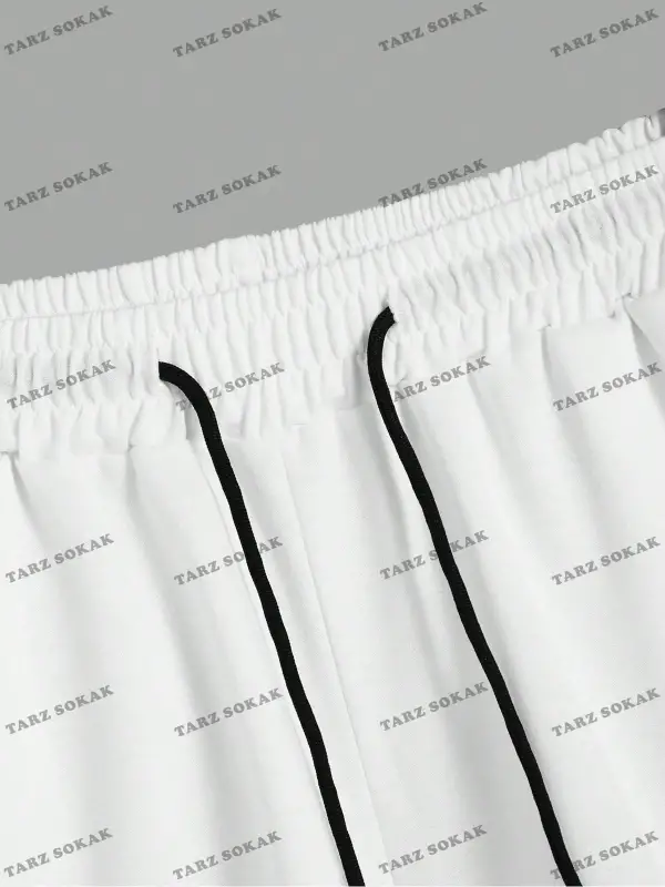 Manfinity Homme Beyaz Örme Erkek Kısa Kollu Tişört ve Şort Takımı