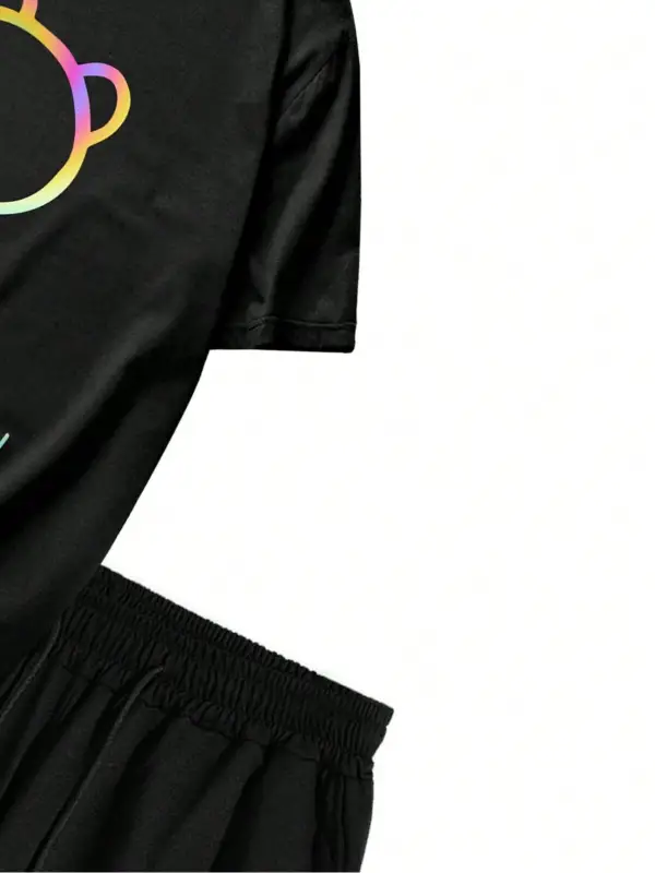 Hypemode Erkek Karikatür Baskılı Kısa Kollu Tişört Ve Şort Örme Rahat 2 Adet Kıyafe