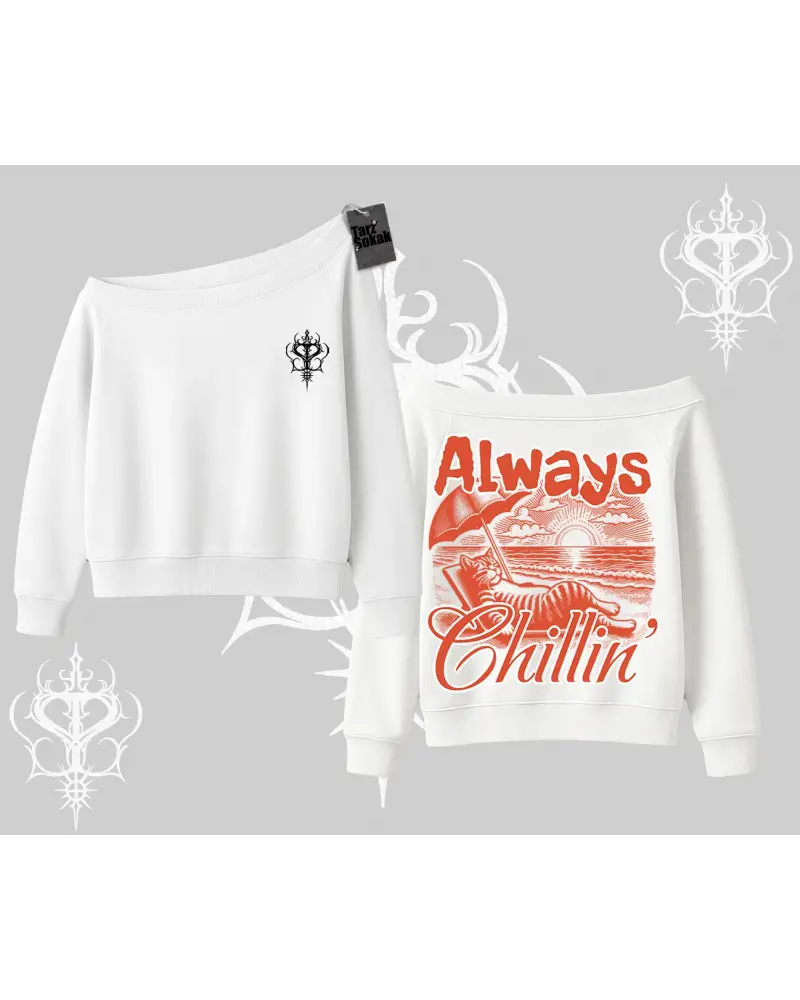 Always Chillin Kedi Arka Baskılı Kayık Yaka Sweatshirt modeli; sokak modası, günlük kullanım ve trend kombinler için ideal yapısıyla Tarzsokak’ta uygun fiyat ve hızlı kargo avantajıyla sunulmaktadır.