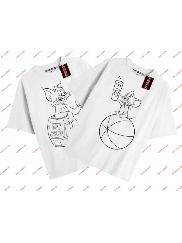 2 Adet Tir Çift Sevgili Tom And Jerry Cartoons Unisex Beyaz T-shirt Beyaz T-shirt