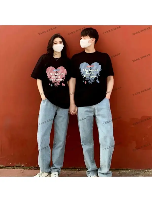 2 Li Harajuku Style Çift Sevgili Kombinleri Couple Clothing Yeni Sezon 2 Adet