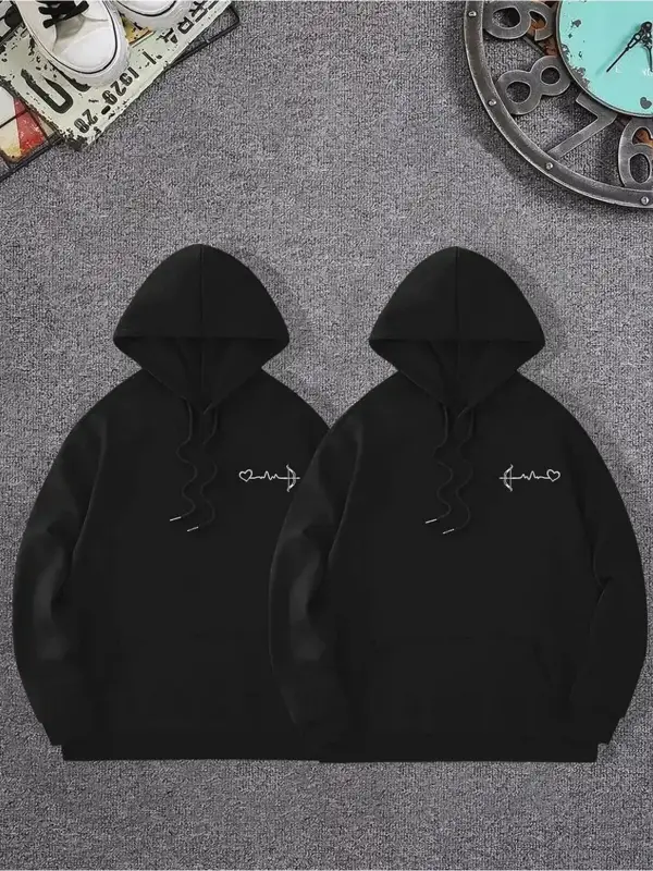 Siyah Kapşonlu Sweatshirt Çift Sevgili Kombinleri Couple Clothing