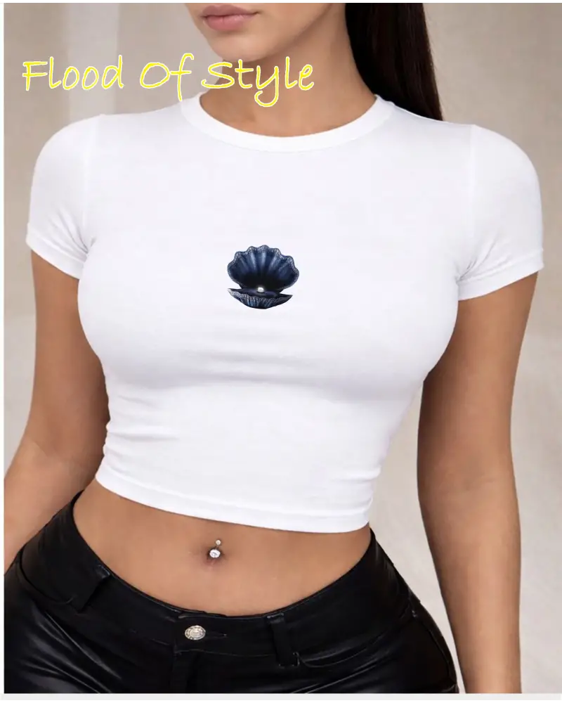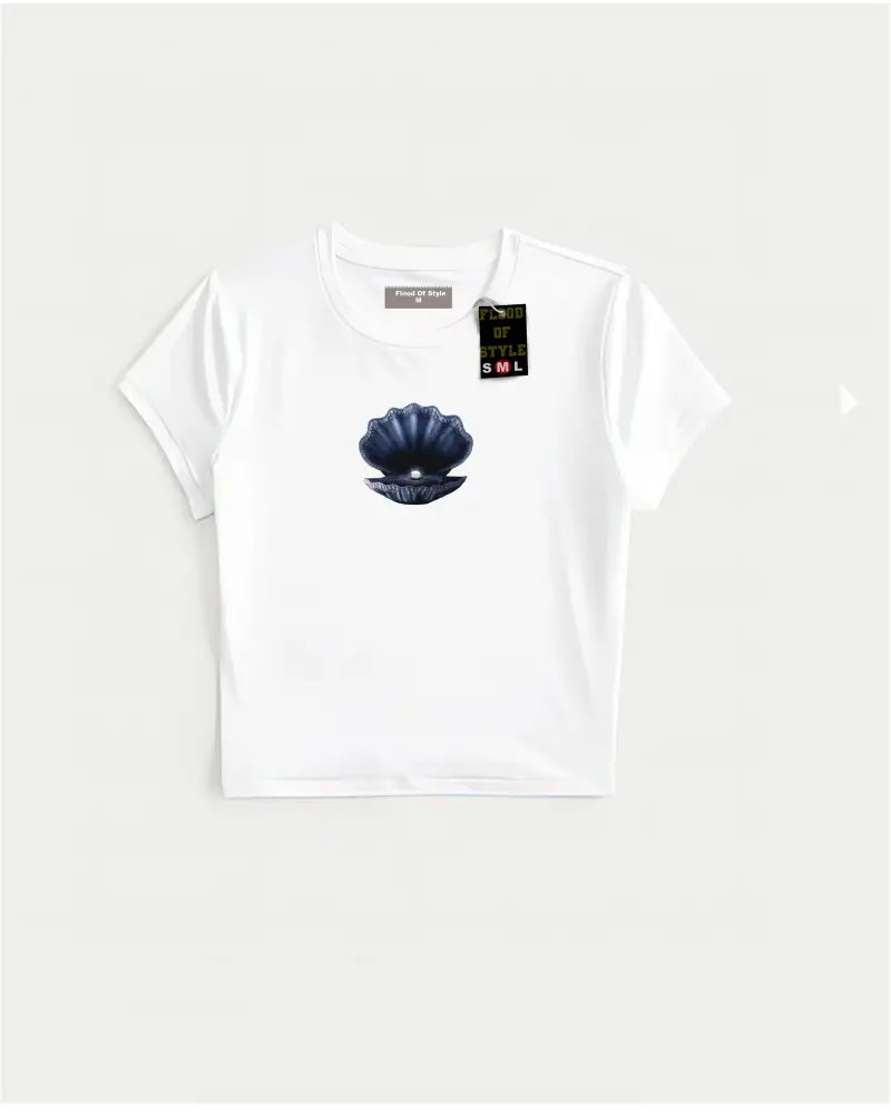 Beyaz Babby Tee deniz kabugu inci Özel tasarım