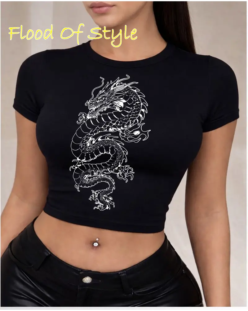 Kelebek Kalp Grafik Baskı Bayan Kırpma T-Shirt Yaz Yüksek Elastik Yumuşak Üstler Y2K İnce T G