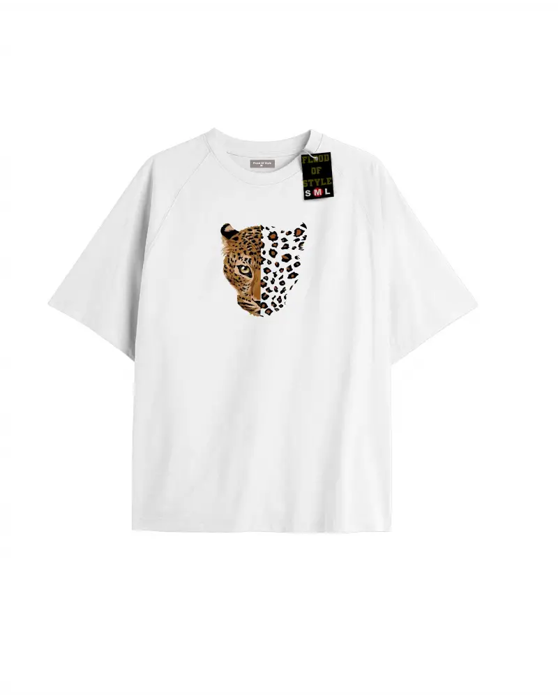 Beyaz Oversize T-shirt aslan Özel tasarım