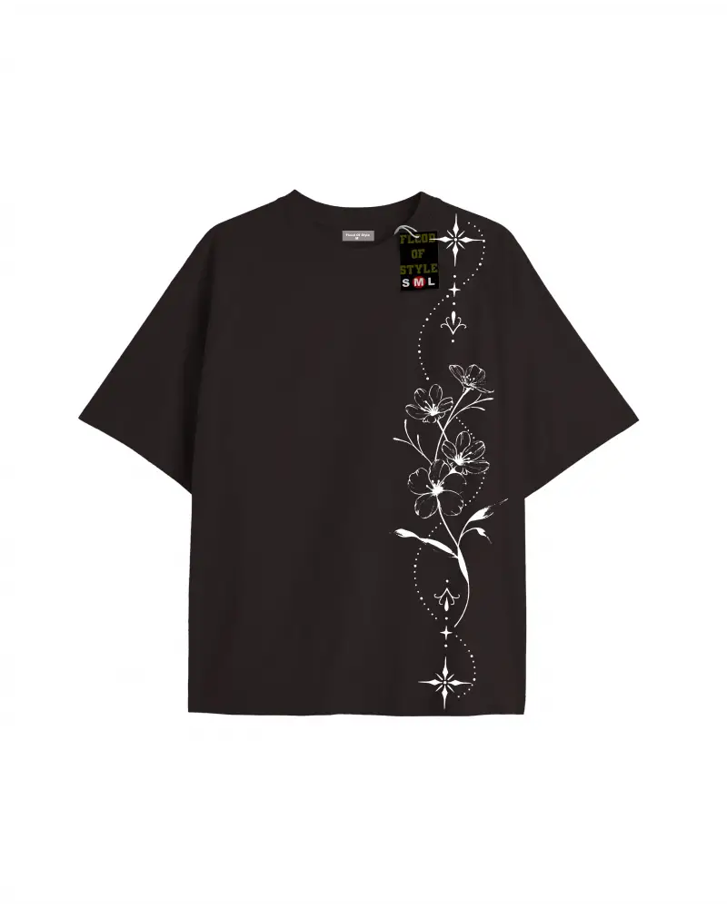 Beyaz Oversize T-shirt çiçek dal yıldız Özel tasarım