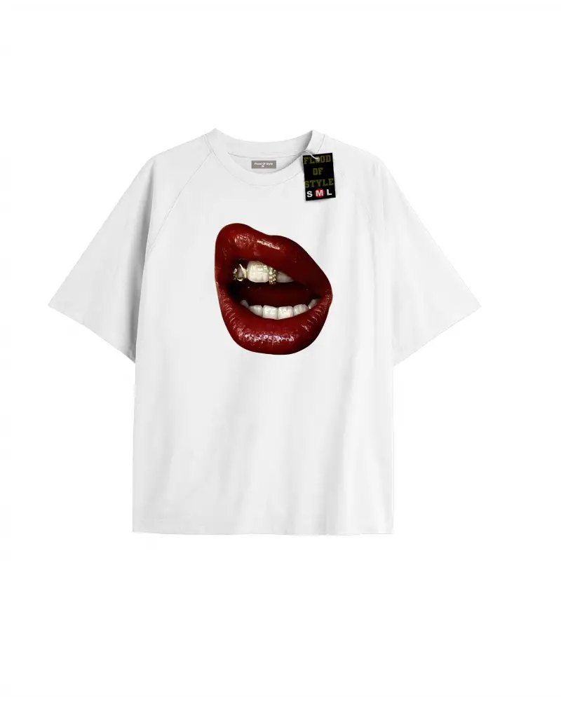 Beyaz Oversize T-shirt dudak Özel tasarım