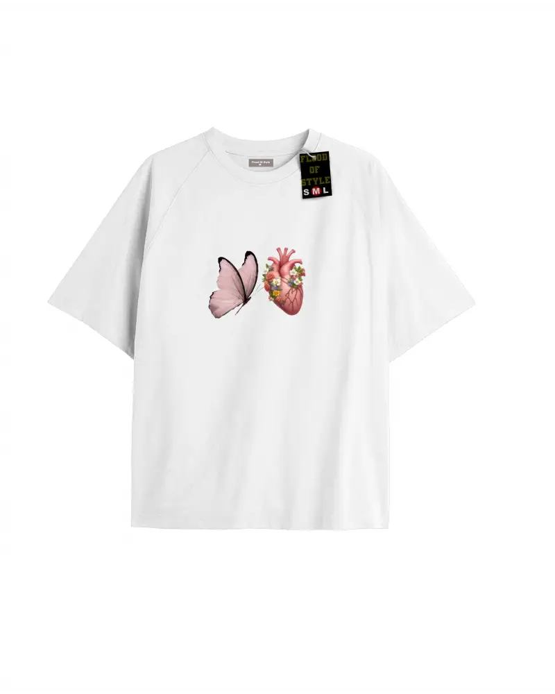 Beyaz Oversize T-shirt kelebek kalpp Özel tasarım