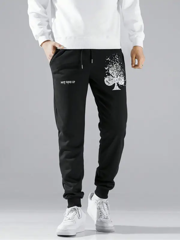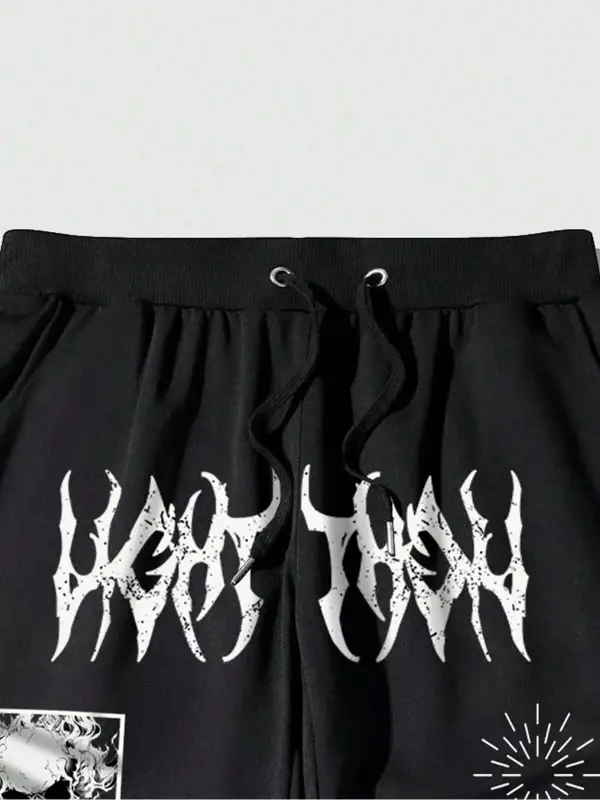 Letter & Fire Print Drawstring Waist Eşofman Altı