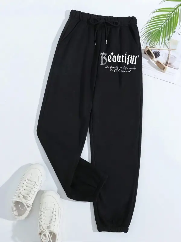Letter Graphic Elastic Waist 4 Mevsim Eşofman