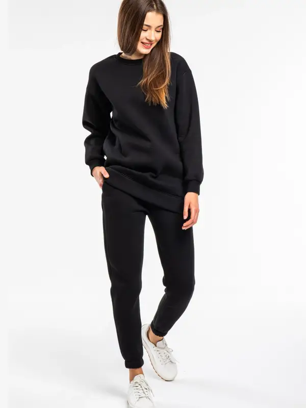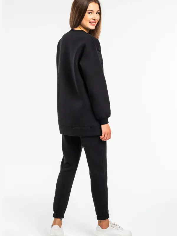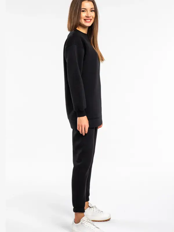 Kadın Siyah Bisiklet Yaka 2 Iplik Polarlı Eşofman Takımı Cy84203
