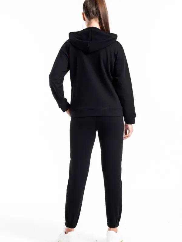 Kadın Siyah Renk Pis Dikiş Kanguru Cep Detaylı Eşofman Takımı