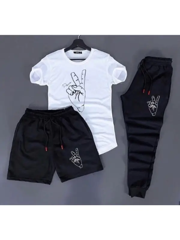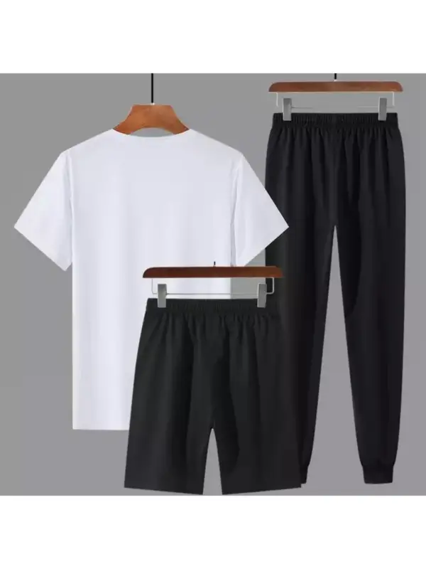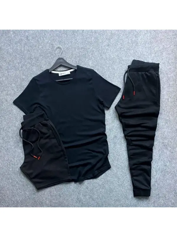 Yuvarlak Yaka Ter Tutmayan %100 Pamuk Yeni Stil Kısa Kollu Şortlu 3lü Erkek Eşofman Takımı