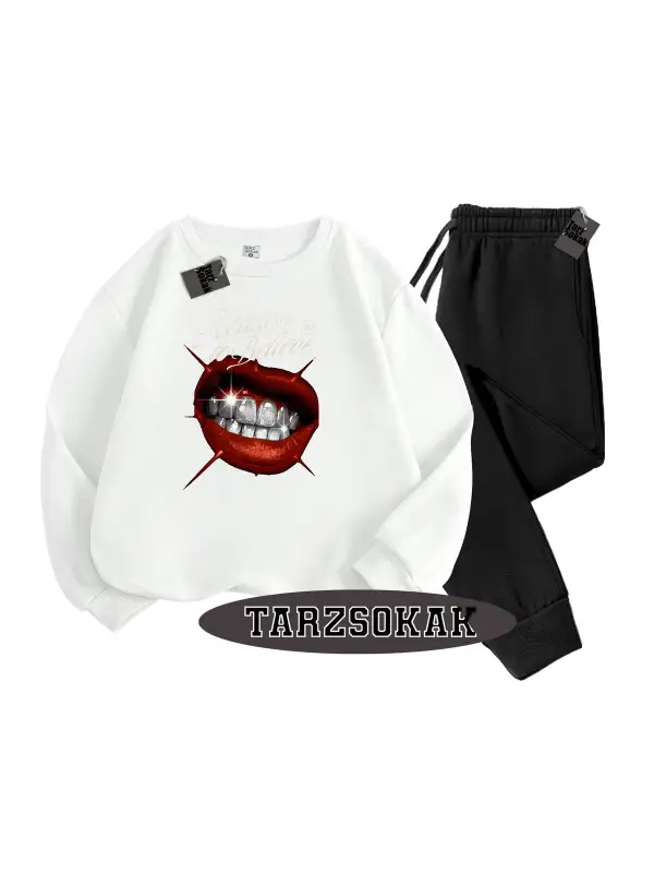 Beyaz Kapşonlu Eager Detaylı ikili TAKIM
