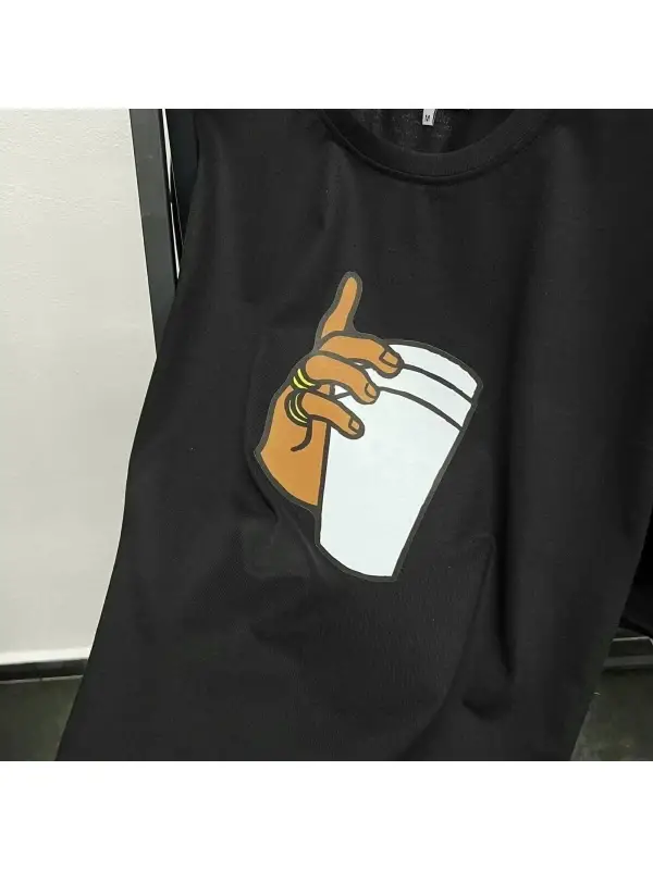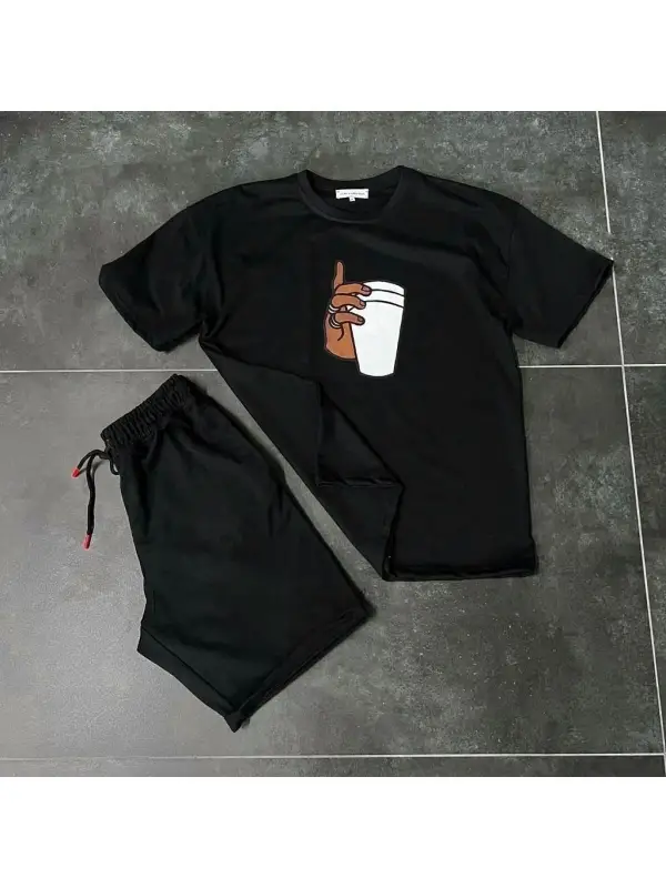 Unisex Paper Cup Baskılı Siyah T-shirt ve Siyah Şort Sporcu Kombin