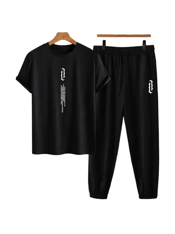 Unisex Bisiklet Yaka Slogan Baskılı Siyah Tişört Ve Siyah Eşofman Altı 2'li Set A