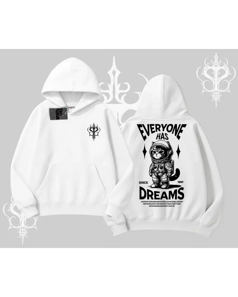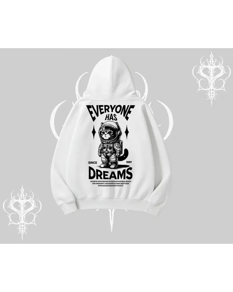 Everyone Has Dreams Yazılı Astronot Kedi Arka Baskılı Kapşonlu Sweatshirt modeli; sokak modası, günlük kullanım ve trend kombinler için ideal yapısıyla Tarzsokak’ta uygun fiyat ve hızlı kargo avantajıyla sunulmaktadır.