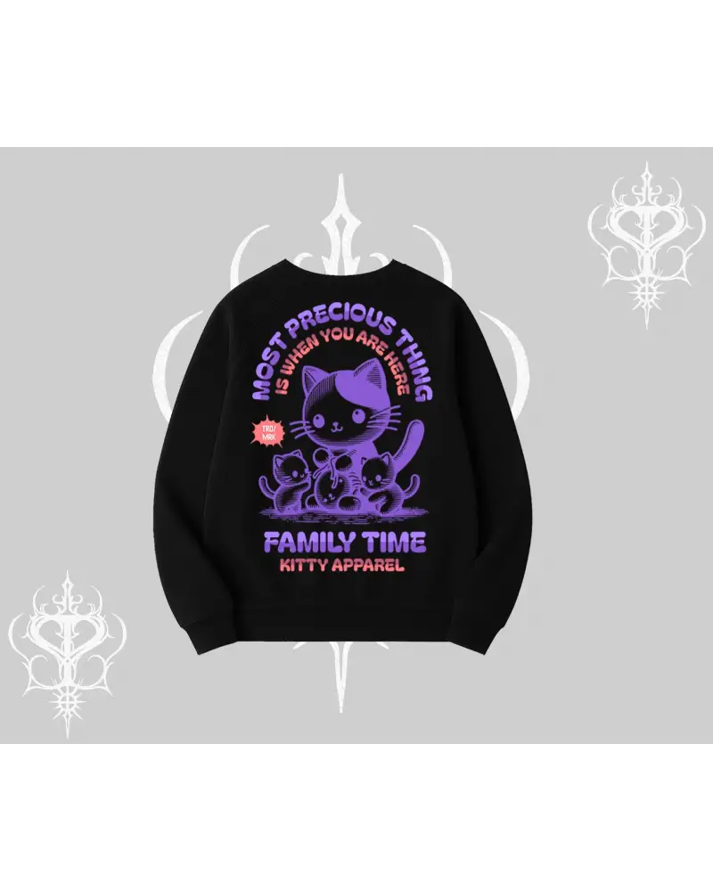 Family Time Yazılı Sevimli Anne Kedi Arka Baskılı Biskilet Sweatshirt modeli; sokak modası, günlük kullanım ve trend kombinler için ideal yapısıyla Tarzsokak’ta uygun fiyat ve hızlı kargo avantajıyla sunulmaktadır.