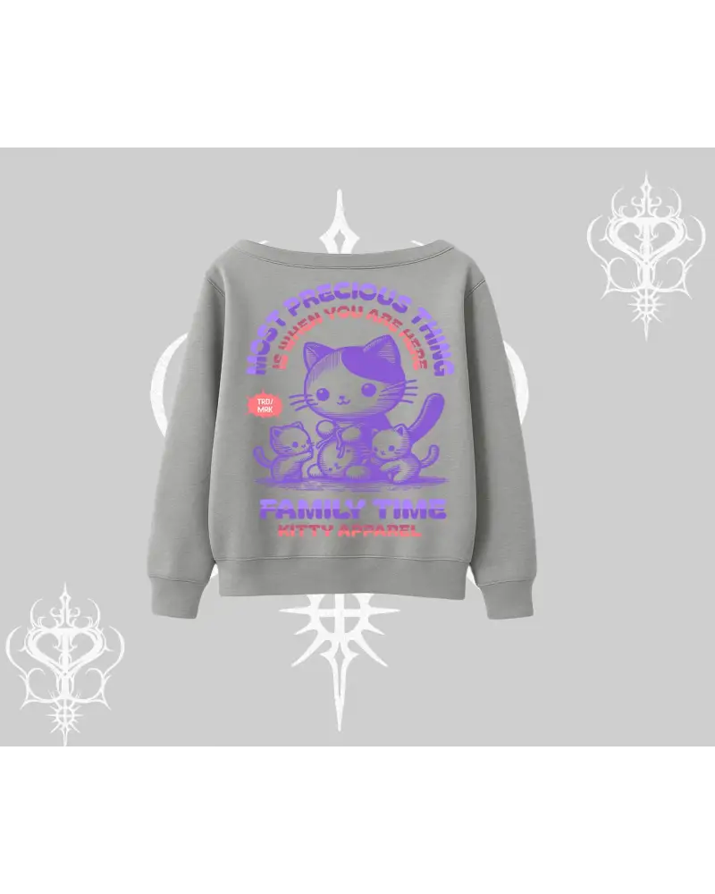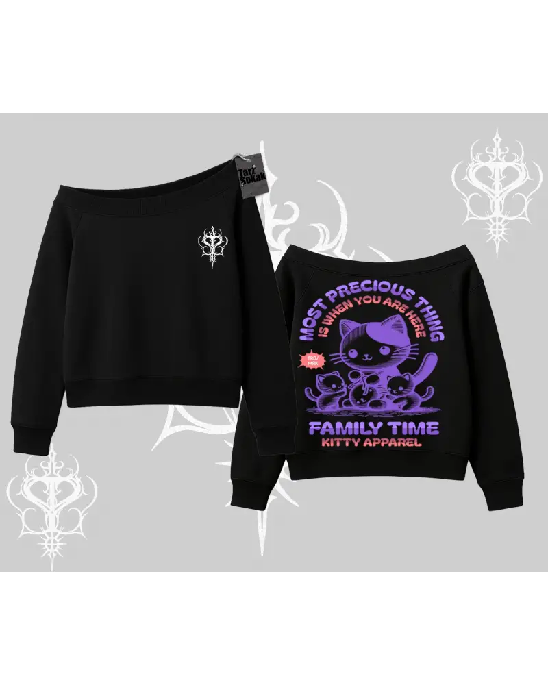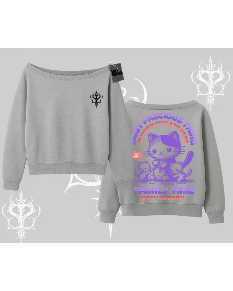 Family Time Yazılı Sevimli Anne Kedi Arka Baskılı Kayık Yaka Sweatshirt modeli; sokak modası, günlük kullanım ve trend kombinler için ideal yapısıyla Tarzsokak’ta uygun fiyat ve hızlı kargo avantajıyla sunulmaktadır.