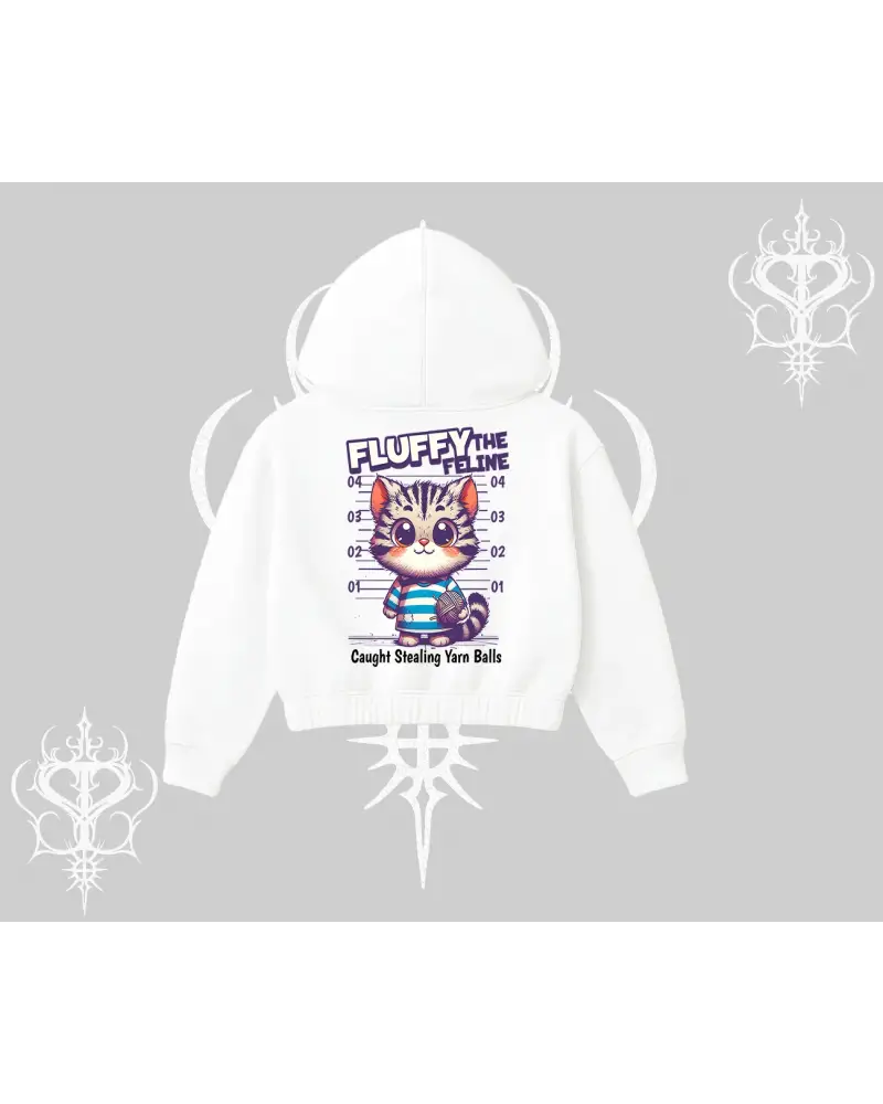 Fluffy The Feline Yazılı Sevimli Kedi Arka Baskılı Kapşonlu Crop Sweatshirt modeli; sokak modası, günlük kullanım ve trend kombinler için ideal yapısıyla Tarzsokak’ta uygun fiyat ve hızlı kargo avantajıyla sunulmaktadır.