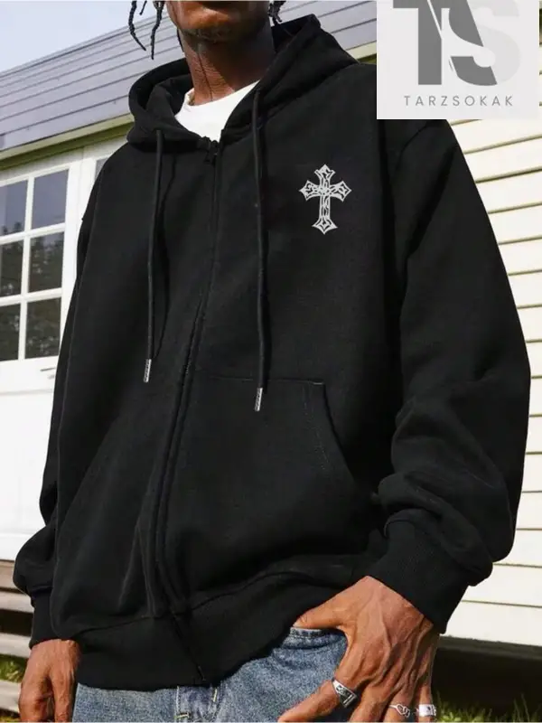Haç Sembol Sweatshirt Fermuarlı Hırka Siyah