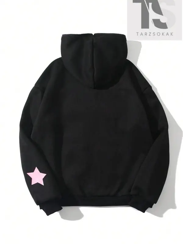 Unisex Baskılı Kapüşonlu Fermuarlı Sweatshirt Siyah