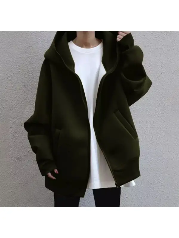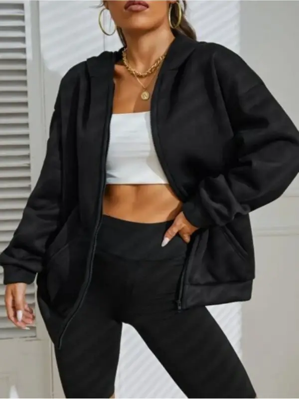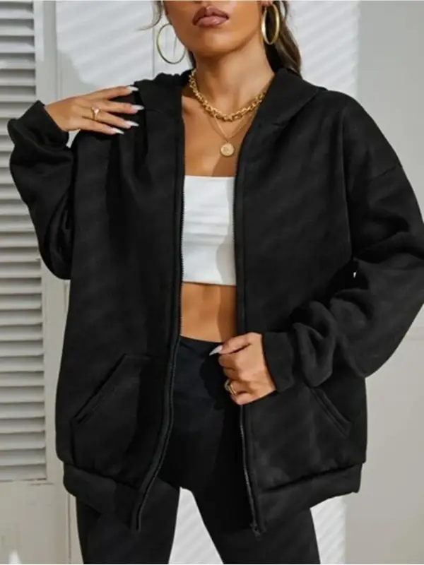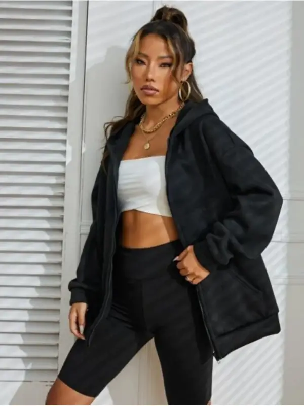 Büyük Beden Kapüşonlu Tam Fermuarlı Oversize Sokak Stili Kadın Ceket-sweatshırt LDY Siyah