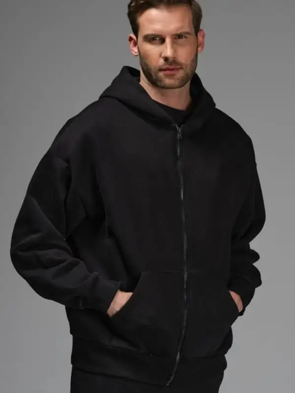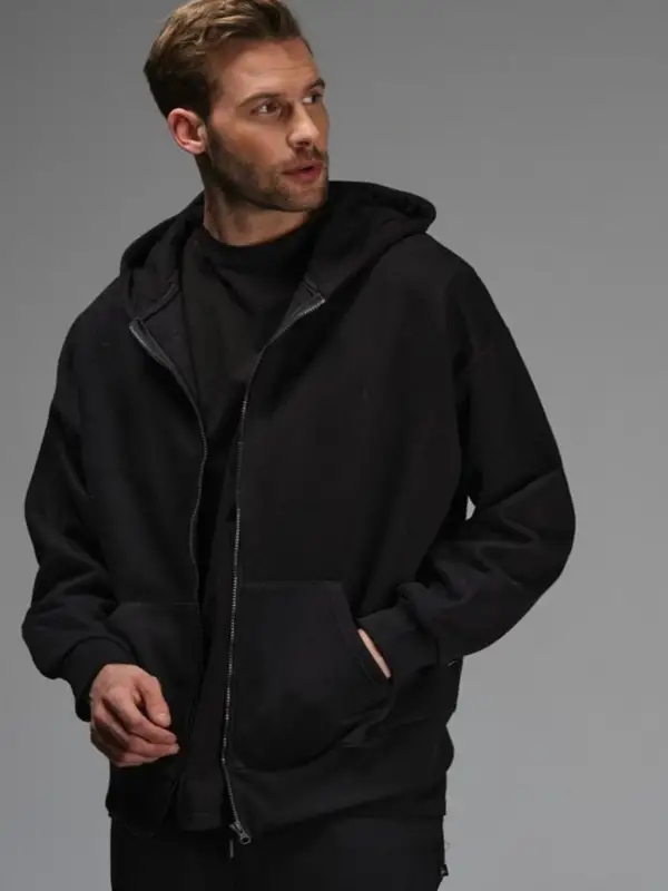 Siyah Oversize 3 Iplik Kalın Içi Polarlı Fermuarlı 1.kalite Bol Kesim Düz Baskısız Sweatshirt