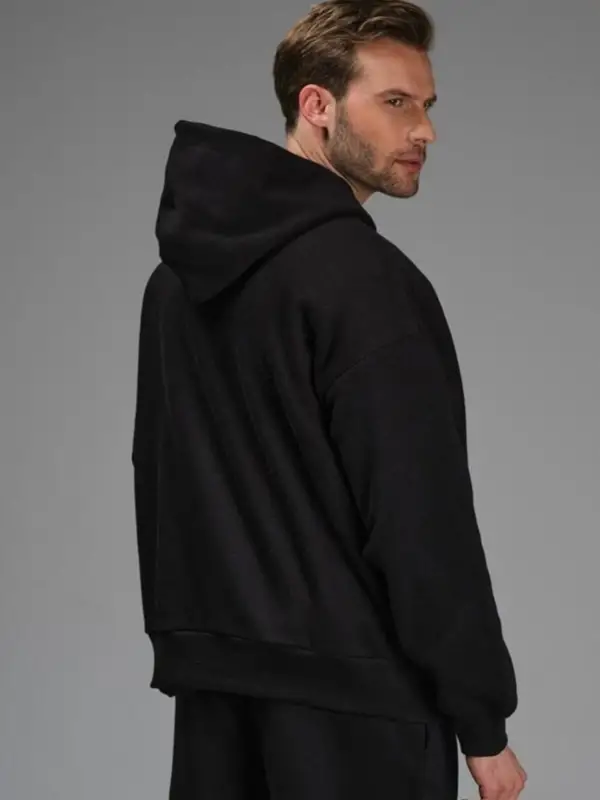Siyah 2 ip Örme Kumaş Kapüşonlu Fermuarlı Sweatshirt