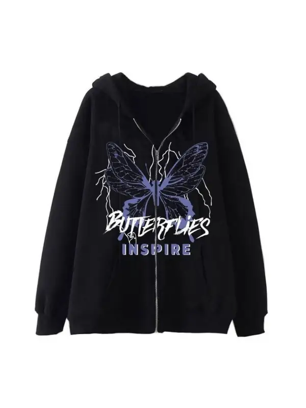Butterflies Kelebek Desenli Fermuarlı Hoodie 14534