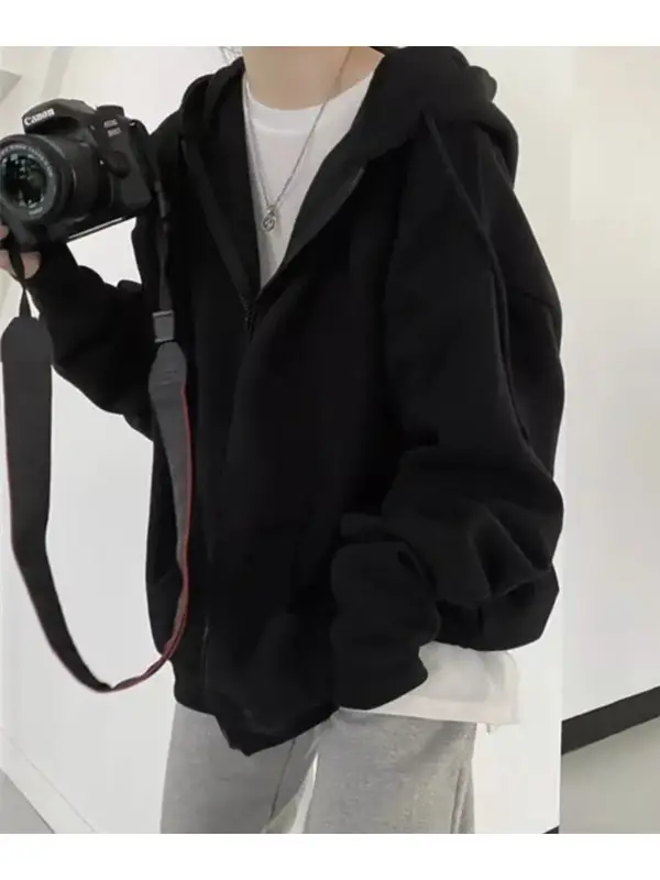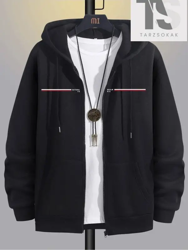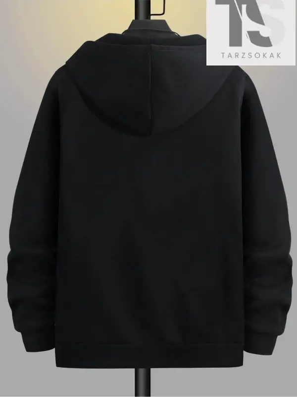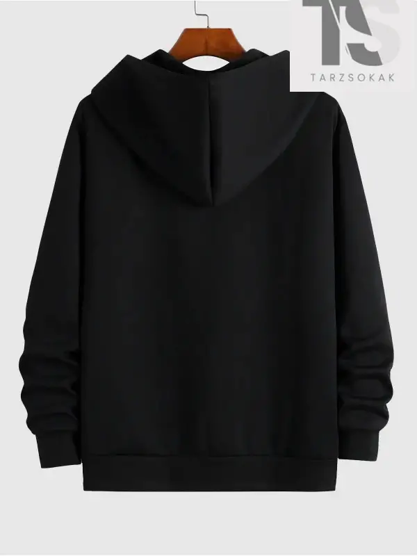 Siyah Kapüşonlu Fermuarlı Sweatshirt