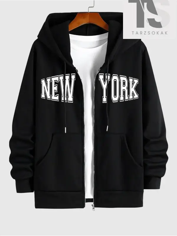 New York Yazılı Sweatshirt Fermuarlı Hırka Siyah