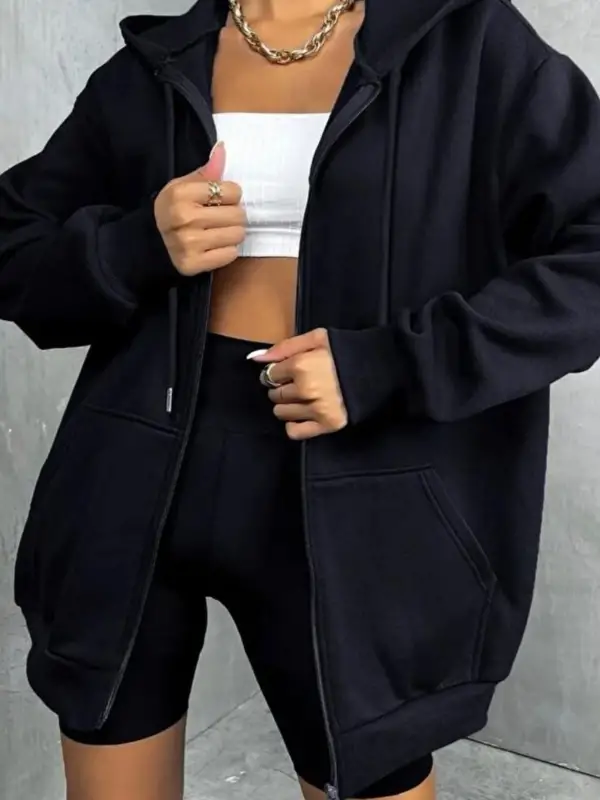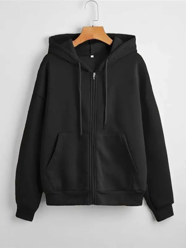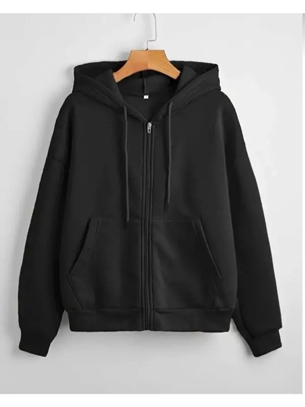 Özel Tasarım Kapüşonlu Tam Fermuarlı Süper Oversize Tam Kışlık Kadın Ceket-sweatshı Siyah