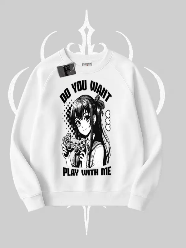 Biskilet Sweatshirt Do You Want Play With Me Anime Kız Baskılı