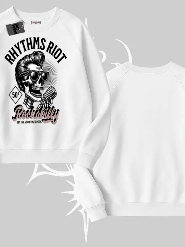 Biskilet Sweatshirt Rhythms Riot Vintage Rockabilly Skull Street Aesthetic