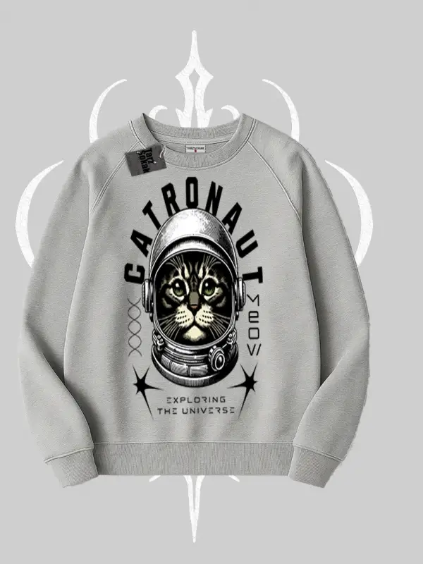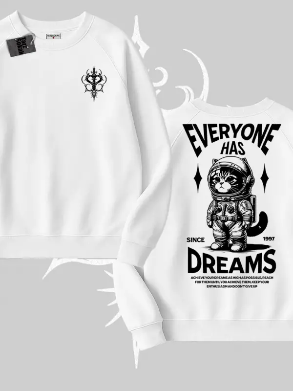 Everyone Has Dreams Yazılı Astronot Kedi Arka Baskılı Biskilet Sweatshirt