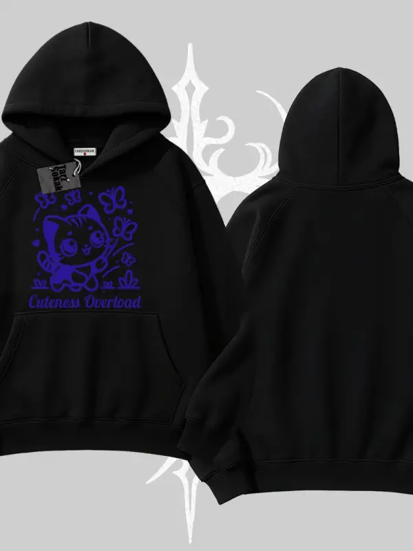Fluffy The Feline Yazılı Sevimli Kedi Arka Baskılı Biskilet Sweatshirt