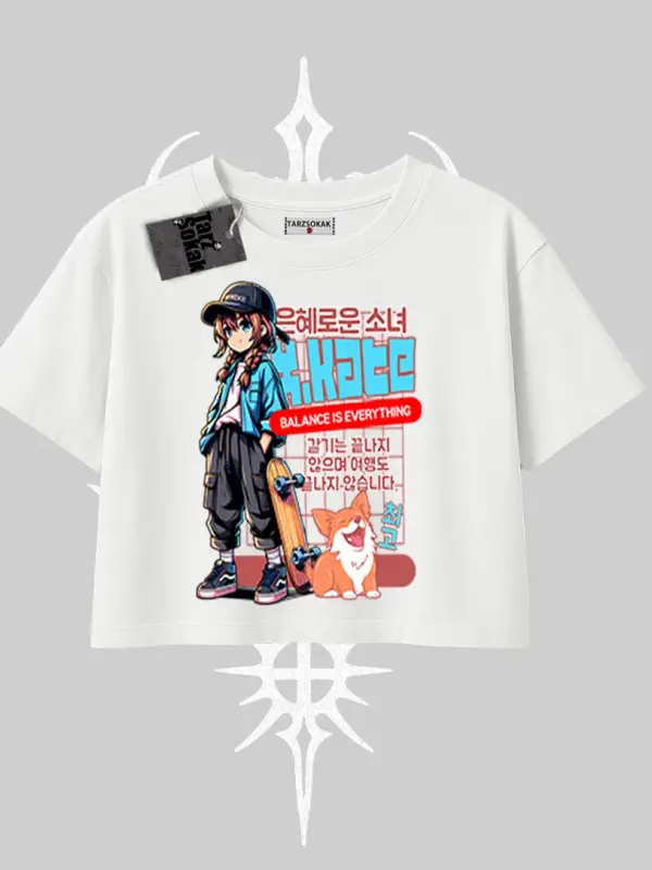 Oversize Crop Tshirt Oversize Anime Kız Baskılı