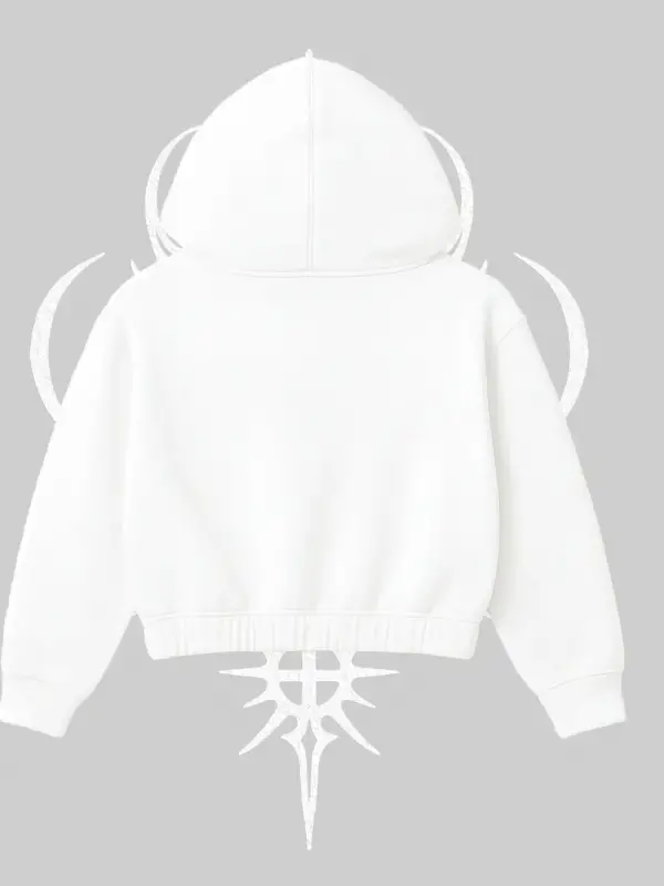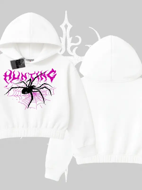 Beyaz Crop Kapşonlu Sweatshirt Autumn Spider