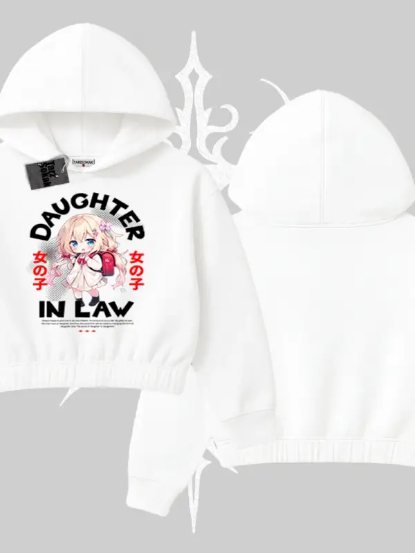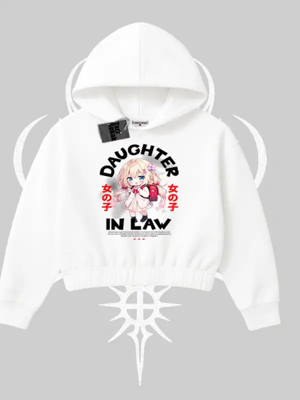 Kapşonlu Crop Sweatshirt Anime Girl Daughter In Law Baskılı