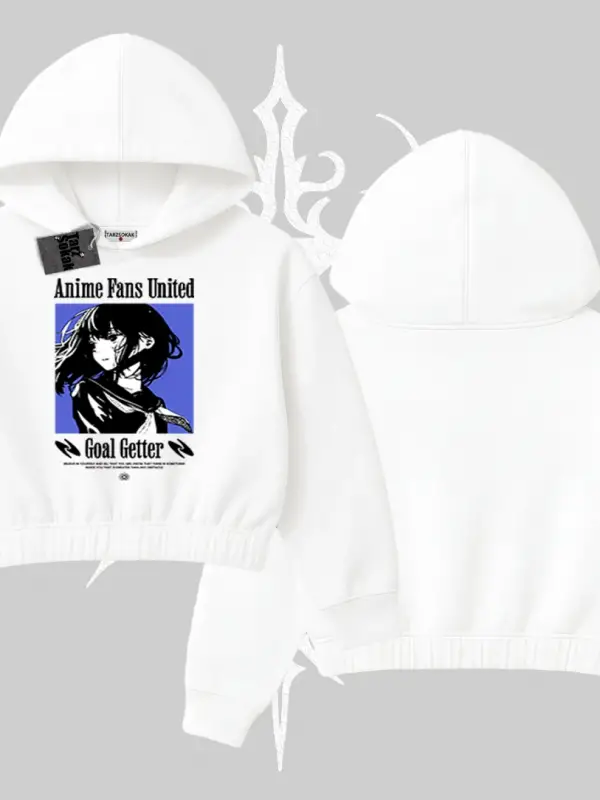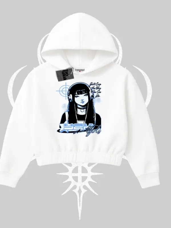 Kapşonlu Crop Sweatshirt Cyber Y2K Anime Girl Street Sound Aesthetic
