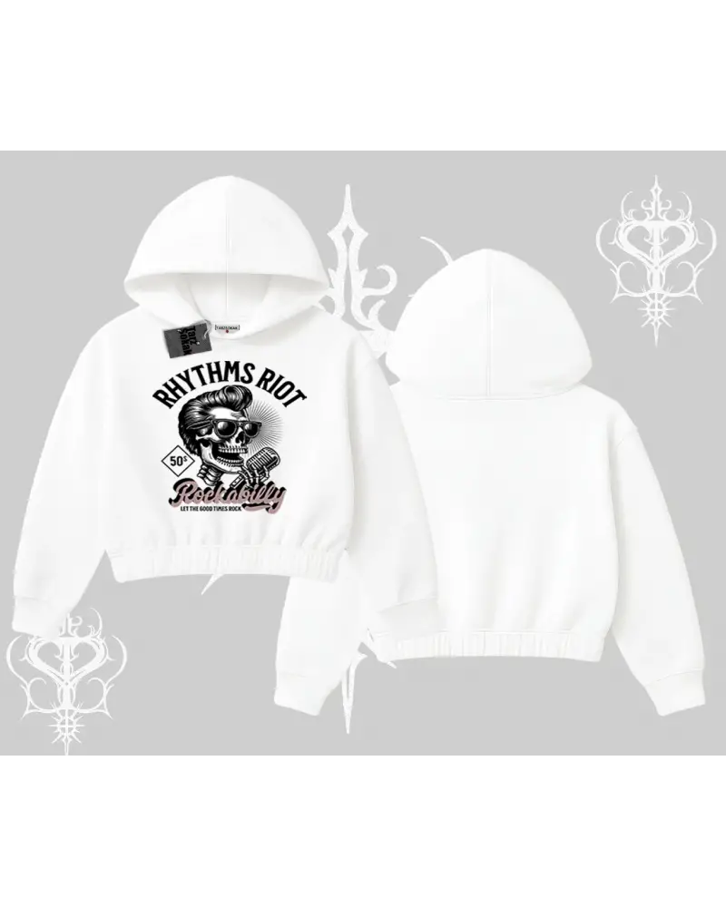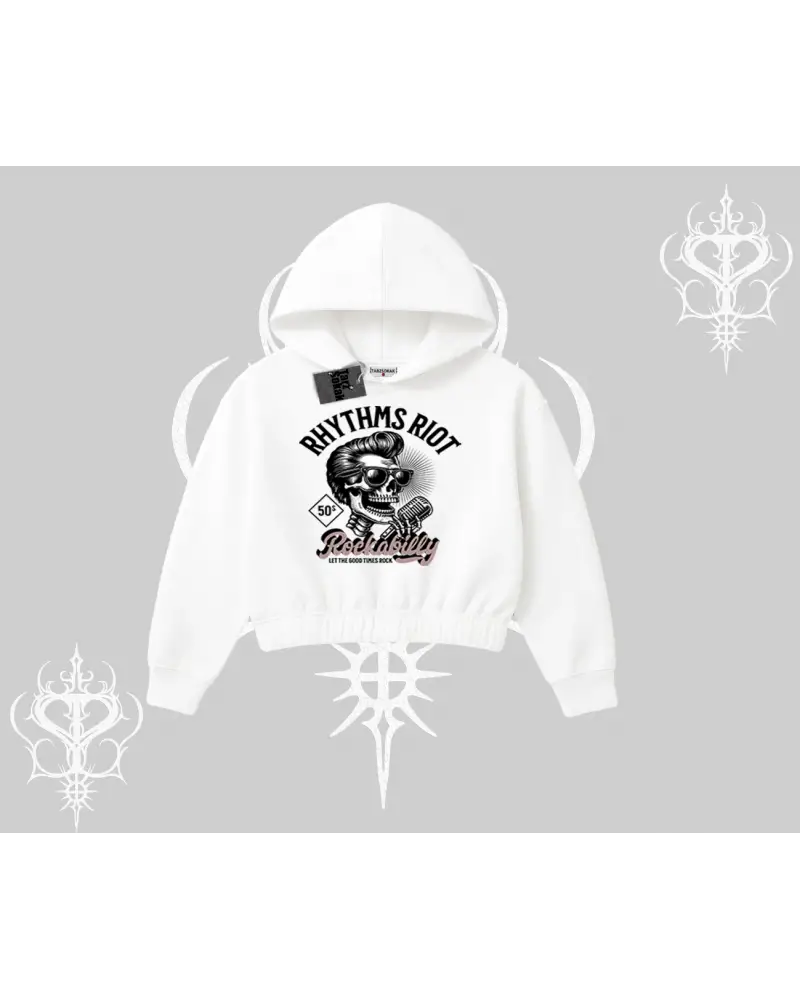 Kapşonlu Crop Sweatshirt Rhythms Riot Vintage Rockabilly Skull Street Aesthetic modeli; sokak modası, günlük kullanım ve trend kombinler için ideal yapısıyla Tarzsokak’ta uygun fiyat ve hızlı kargo avantajıyla sunulmaktadır.