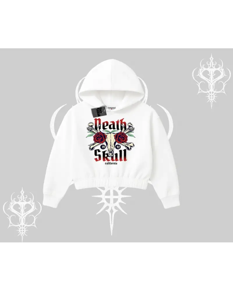 Kapşonlu Crop Sweatshirt Skull & Roses Vintage West Coast Rebellion modeli; sokak modası, günlük kullanım ve trend kombinler için ideal yapısıyla Tarzsokak’ta uygun fiyat ve hızlı kargo avantajıyla sunulmaktadır.