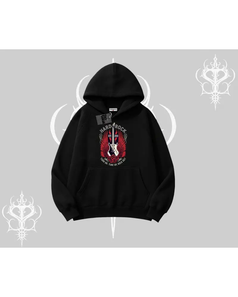 Kapşonlu Sweatshirt Hard Rock Winged Guitar Rebellion modeli; sokak modası, günlük kullanım ve trend kombinler için ideal yapısıyla Tarzsokak’ta uygun fiyat ve hızlı kargo avantajıyla sunulmaktadır.