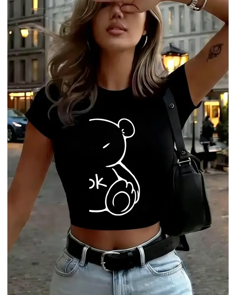 Karikatür Ayı Rahat Hissediyor Baskılı Kadın Babby TeeTişörtleri Yazlık Yuvarlak Yaka Dar Kesim Ü kaliteli malzeme ve konforlu kullanım sunan bir üründür. Günlük kullanım için ideal olup uygun fiyat ve hızlı kargo avantajıyla sunulmaktadır.
