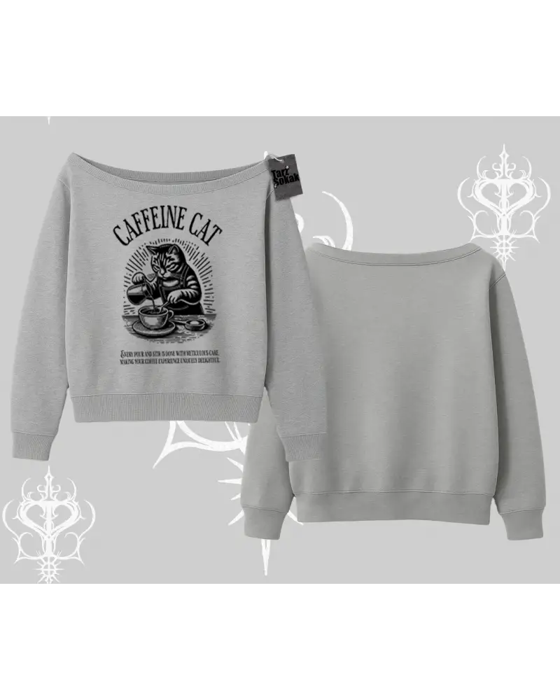 Kayık Yaka Sweatshirt Caffeine Cat Kahve Temalı Kedi Baskılı modeli; sokak modası, günlük kullanım ve trend kombinler için ideal yapısıyla Tarzsokak’ta uygun fiyat ve hızlı kargo avantajıyla sunulmaktadır.