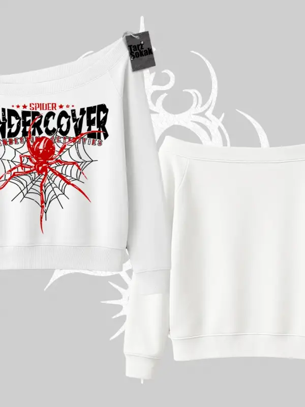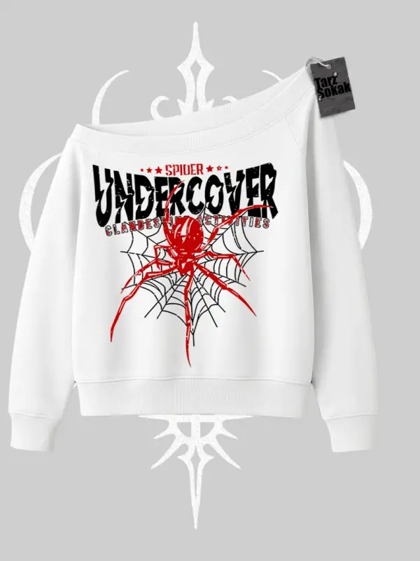 Beyaz Kayık Yaka Sweatshirt Spider Undercover