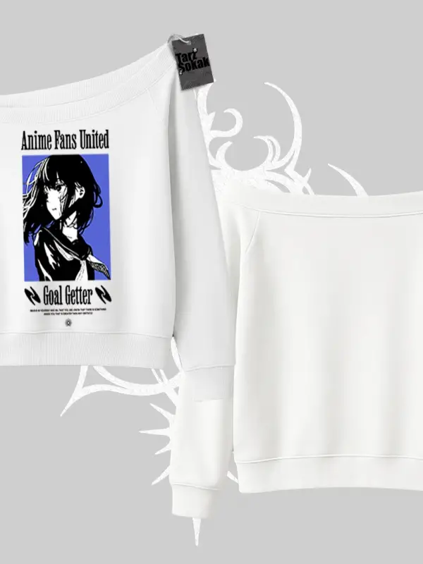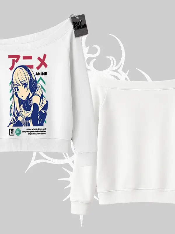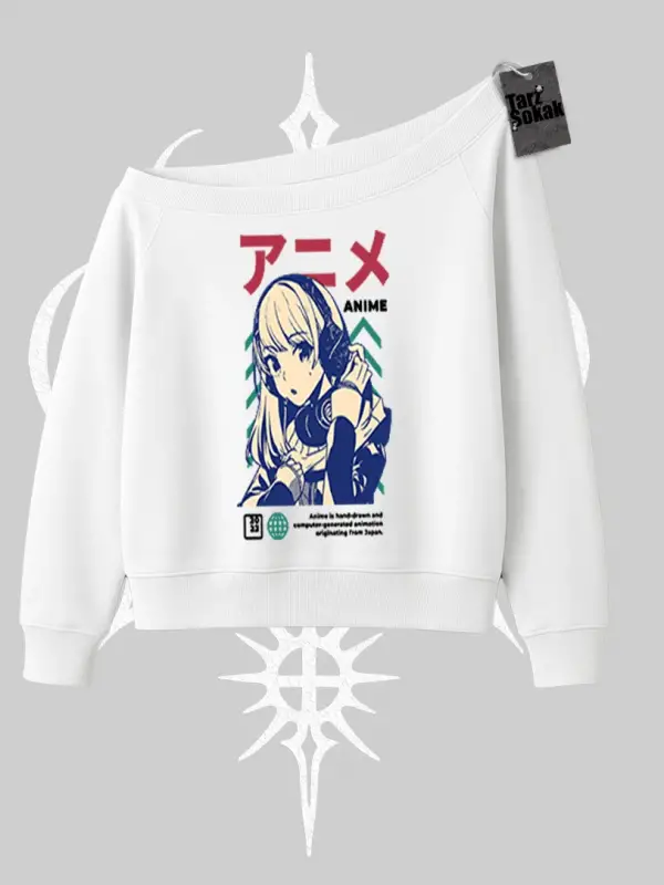 Kayık Yaka Sweatshirt Anime Kız Desenli Japon Tarzı